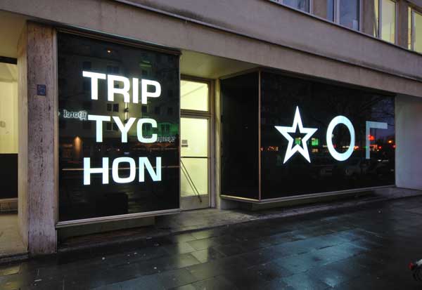 Ohne Titel, 2012 (zusammen mit Sebastian Freytag, Guido Münch) Latexfarbe auf Fenster Gesamtmaß: ca. 270 x 1080 cm