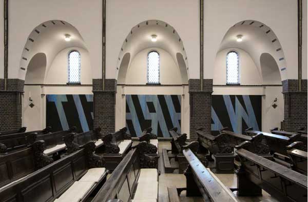 Wahrheiten, 2017 Acryl, Lack, Pigmente auf Wand, sechsTtafeln, jeweils 232 x 300 cm Sankt Christophorus, Berlin